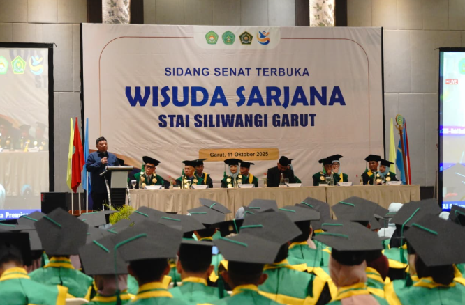 GARUT, Tarogong Kaler — Bupati Garut, H. Abdusy Syakur Amin, menghadiri acara Wisuda Sekolah Tinggi Agama Islam (STAI) Siliwangi Garut yang digelar di Ballroom Hotel Santika Garut, Jalan Cipanas Baru, Kecamatan Tarogong Kaler, pada Sabtu (11/10/2025). Dalam suasana penuh khidmat tersebut, sebanyak 247 wisudawan resmi dikukuhkan sebagai lulusan.