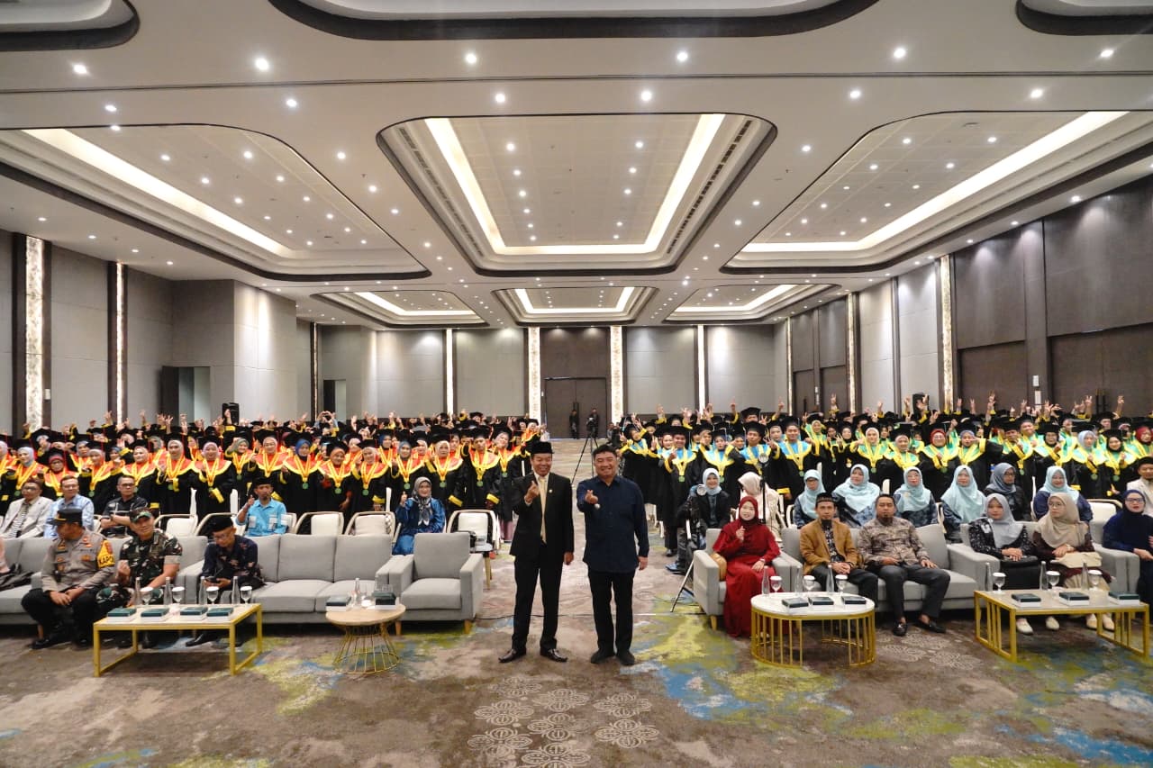 “Saya berharap para wisudawan dapat ikut membantu masyarakat di lingkungannya, memberikan akselerasi agar daerah ini semakin maju, dan menjaga semangat kebersamaan di antara kita,” ujar Bupati Syakur.
